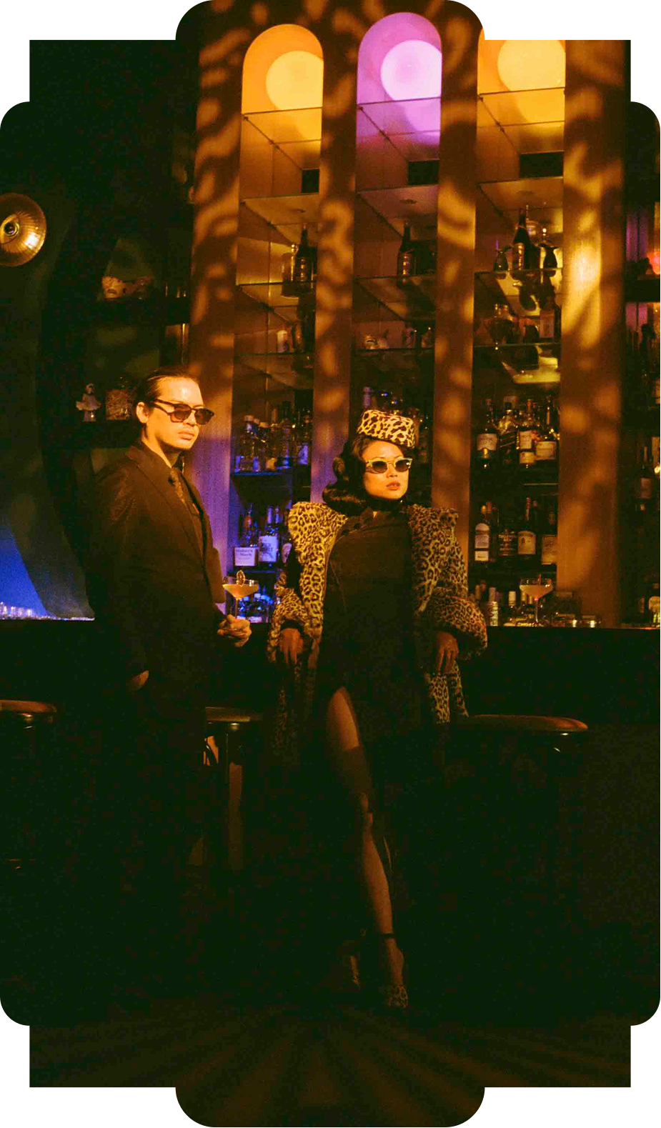 Luxe booths, vintage props, and a lush Shanghai Deco bar backdrop